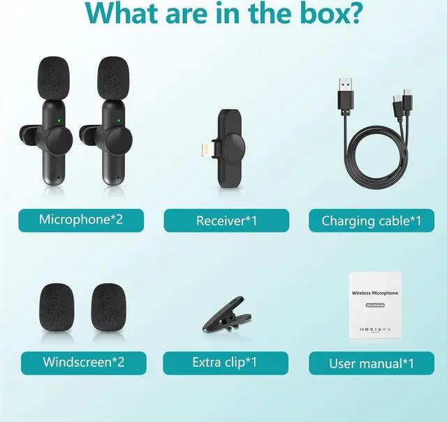 Value for money: The clear sound and concise design of lapel microphone wireless makes your video more professional. You can record videos anytime and anywhere cause these wireless mics for iPhone iPad are mini. PoP voice provide a one-year warranty and 48hrs service. The package includes 2*wireless mic transmitters, 1*wireless receiver, 1*2-in-1 charging cable, 1 user manual, 2 wind proofs and 1 external microphone clip.
