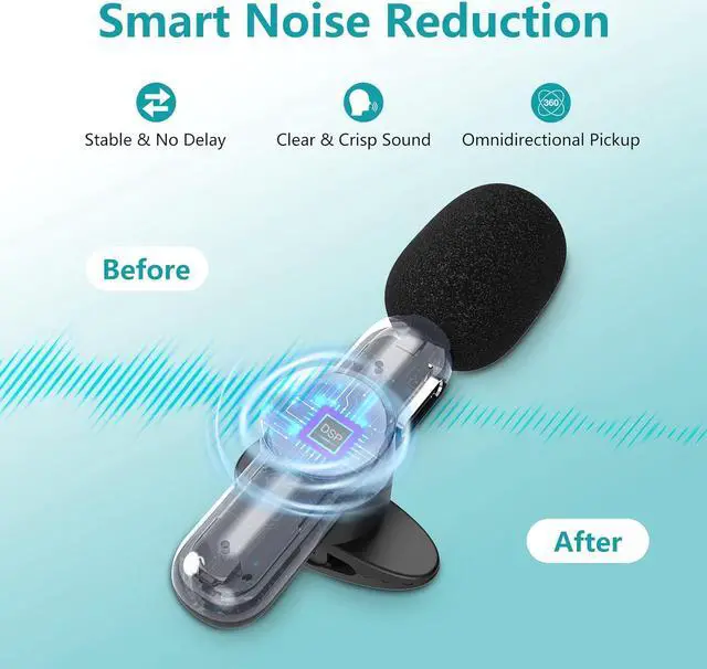 Intelligent noise reduction: K3L2 microphone for iPhone wireless is built with a professional DSP intelligent noise reduction chip, which provides clear sound in a noisy environment. Automatic noise reduction technology reduces the time of video editing and supports a better video viewing experience.