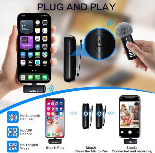Unique OSA Design: The advanced microphone and full digital display mode of the battery compartment screen allow you to intuitively understand the power status of the product at any time. The custom premium wind cap reduces noise without sacrificing aesthetics. The unique high-end sense of the overall product is suitable for attending major products: interviews, video recording, vlog, youtube, tiktok, these are your best choices.