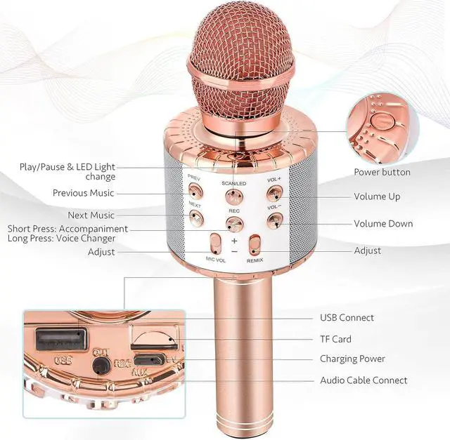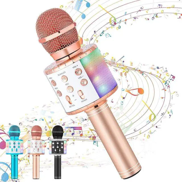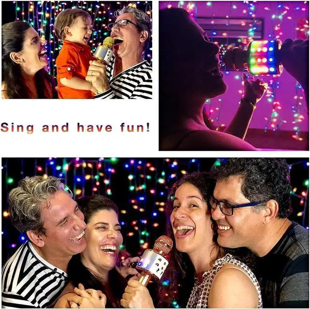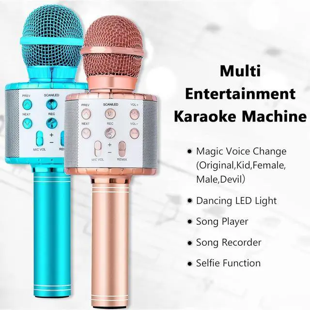 Kids Microphone 4 in 1 Function: Portable hand-held wireless microphone can be used as microphone, Bluetooth speaker, loudspeaker, recorder. It allows you to to enjoy music, record songs or sing your voice at home, KTV, party.