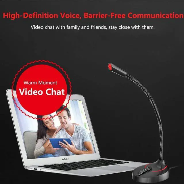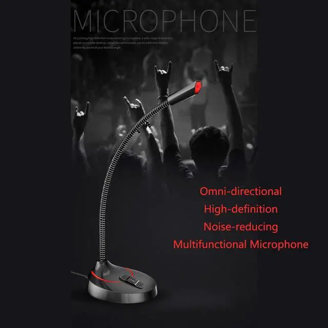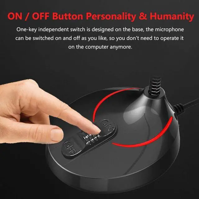 Flexible Goose Neck Stand and ON/OFF Button: Convenient, safe, and stylish 3.5 mm jack desktop microphone with a flexible goose neck stand.