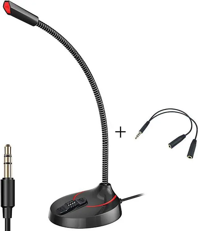Plug and Play Audio Jack Microphone: 3.5 mm stereo plug fits most desktop computers and laptops. Enjoy true-to-life audio in every device, with a 2m cable and an audio splitter cable as a gift.