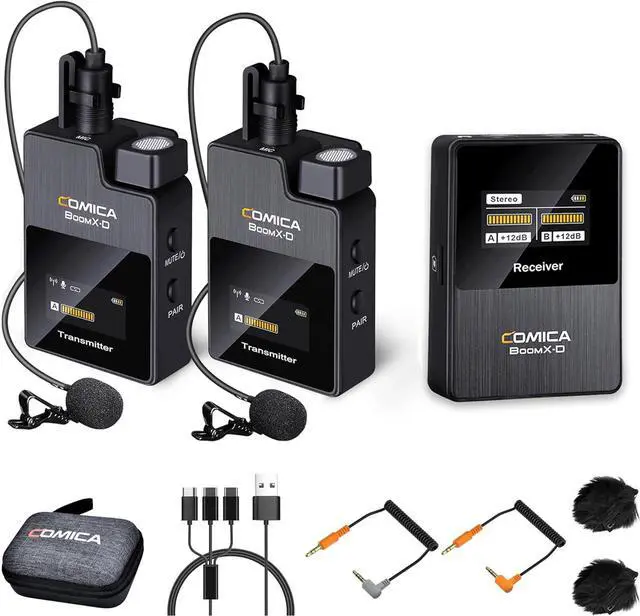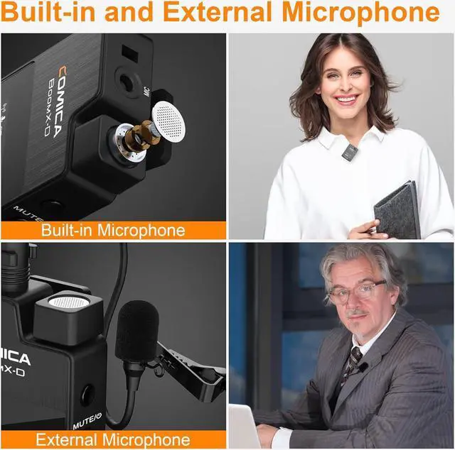 Internal/ External Lapel MicComica BoomX-D2 wireless lapel microphone comes with a lav mic and internal mic as input modes for you to choose. Adopts omnidirectional condenser radio, 360° surround pickup makes the sound more three-dimensional.