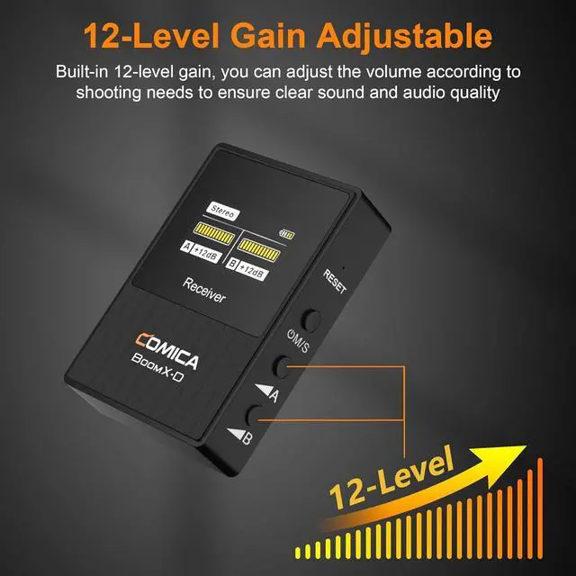 Dual-Channel System & Mono/Stereo ModeComica BoomX-D2 wireless microphone with dual transmitters and one receiver, and it can support mono/stereo output, which is easy for post-processing of audio, perfect for interviewing, recording, vlogging, and live-streaming.