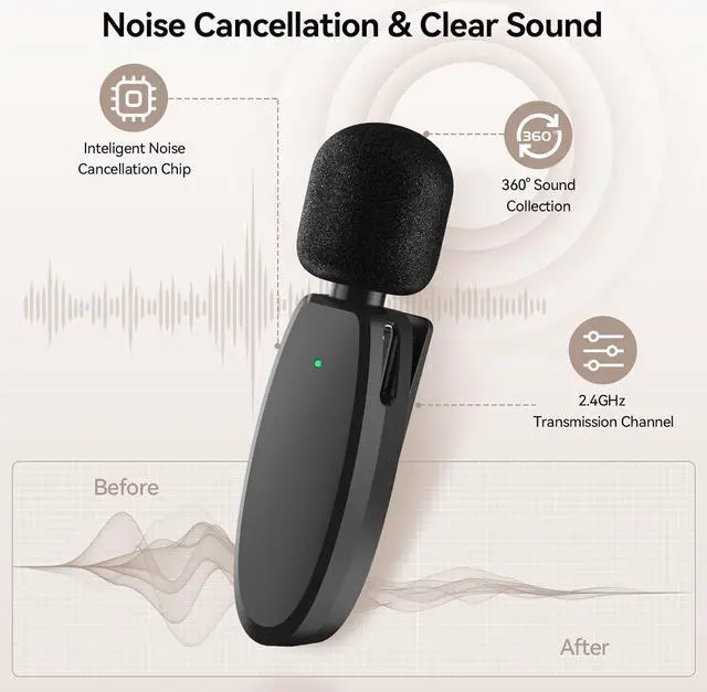 Smart Noise Cancellation: The lavalier microphone features noise-cancellation technology that helps minimize ambient sound and improve audio quality. Whether you're recording a podcast, giving a presentation or conducting an interview, this microphone is a great choice for achieving professional-level audio results.