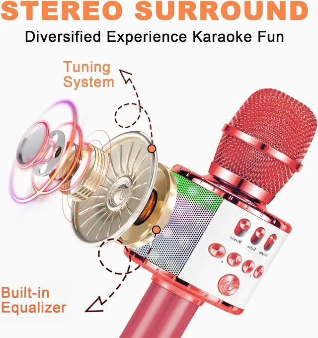 Perfect Gifts- Microphone machine has a built-in controllable colorful LED light that flashes with music and singing. It is a great birthday gift or various holiday gifts.