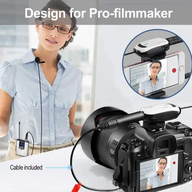 BEST CHOICE FOR VIDEO RECORDING Plug the head worn or clip microphone to the body pack transmitter & plug mini receiver with hot shoe mount to your DSLR camera or phone (with include adaptor/cable), you are ready to take your exciting video
