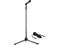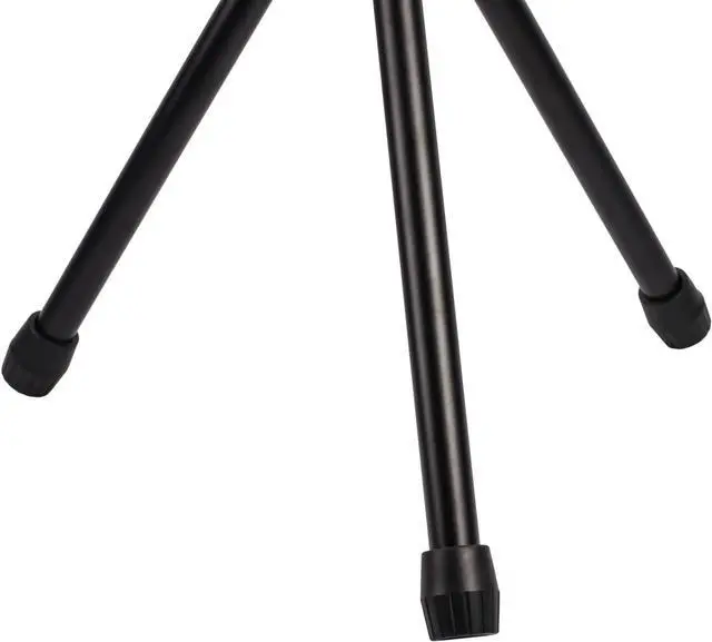 Microphone stand features tripod base and adjustable height (34-60), and folding legs for easy transport and storage.