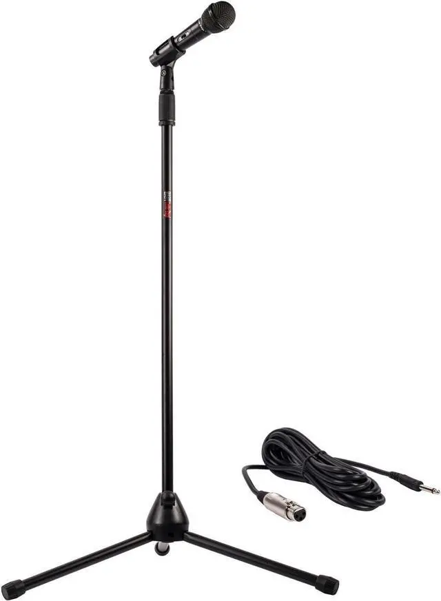 All-in-One kit includes a high-performance microphone, sturdy metal adjustable tripod microphone stand with clip, and a 20 ft. cable (XLR to ¼ connectors)