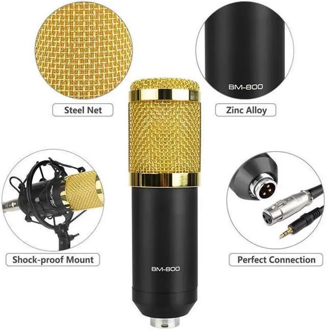 Stability - The BM-800 shock mount's spider suspension isolates your studio microphone from handling and floor noise by decoupling it from the rest of your room. This results in clearer recordings with less unwanted low-frequency artifacts. The BM-800 shockmount accommodates microphones from 55mm to 60mm in diameter. It screws into any standard mic stand