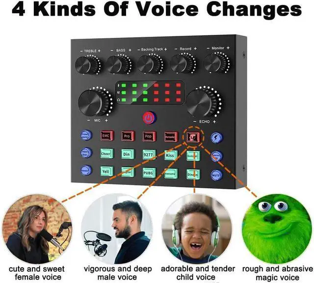 Multifunctional condenser microphone bundle Live sound card has 10 sound effects, 4 sound variations ( Child, Magic, Female and Male), 4 sound modes and 13 functions, podcast mixer supports 2 podcast mic inputs with 1 accompaniment input, suitable for 2 or more people to stream simultaneously. Voice changer of podcast equipment bundle will bring you more fun and make your work more creative.