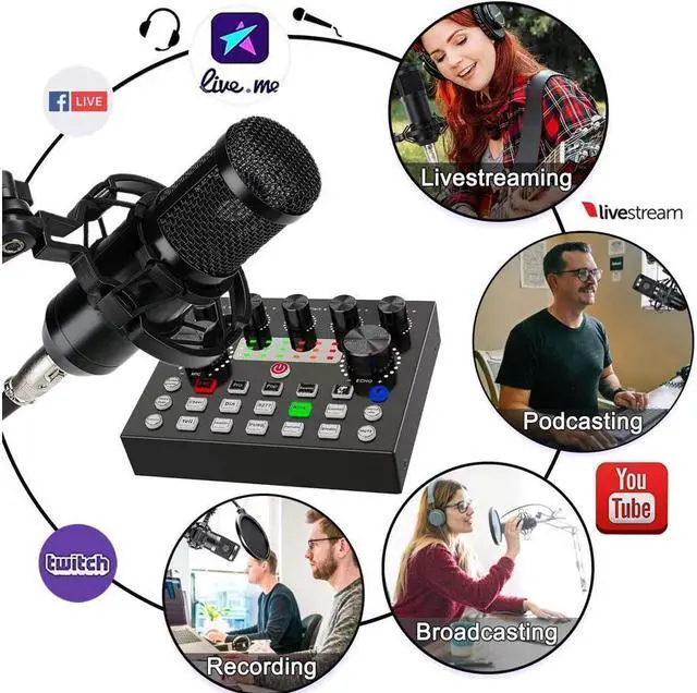 Professional Podcast Equipment Bundle This podcast microphone bundle is born for recording, podcasting, live streaming on YouTube, TikTok, etc. podcast equipment bundle contain a condenser microphone, you can start podcasting easily after plugging audio interface into smart phone or PC. This podcast equipment bundle can meet almost all your needs and it is unnecessary to buy other podcast kit again.