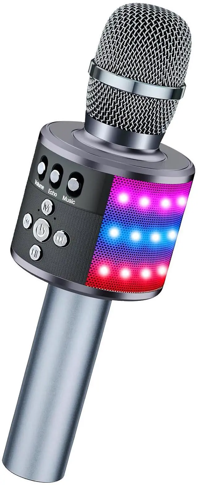 Take your karaoke experience to the next level with the Intexca Bluetooth Karaoke Microphone! Designed for both kids and adults, this 4-in-1 wireless handheld microphone combines excellent sound quality, dynamic LED lights, and versatile connectivity to create the ultimate singing experience. Whether youre hosting a party, celebrating a special occasion, or just singing for fun, this microphone provides everything you need for an incredible live show. With a powerful stereo speaker, Bluetooth connectivity, and a controllable light display, the Intexca Karaoke Microphone is perfect for music lovers of all ages.