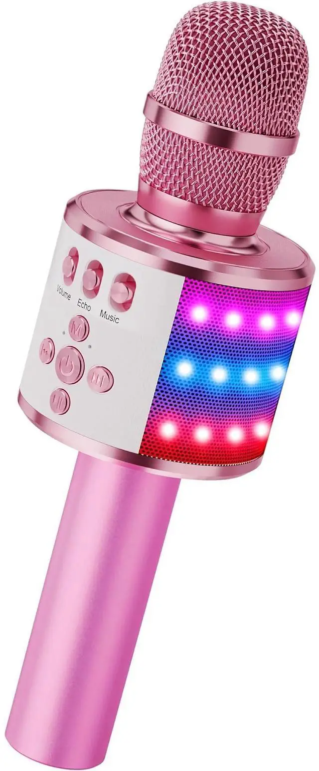 Toytexx Inc Bluetooth Karaoke Microphone, 4-in-1 Wireless Mic with LED Lights for Kids & Adults Pink