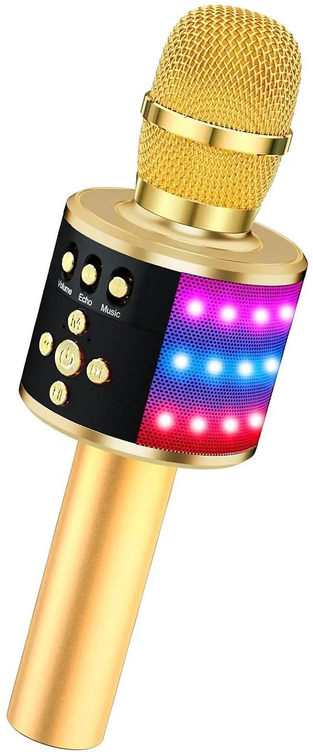 Take your karaoke experience to the next level with the Intexca Bluetooth Karaoke Microphone! Designed for both kids and adults, this 4-in-1 wireless handheld microphone combines excellent sound quality, dynamic LED lights, and versatile connectivity to create the ultimate singing experience. Whether youre hosting a party, celebrating a special occasion, or just singing for fun, this microphone provides everything you need for an incredible live show. With a powerful stereo speaker, Bluetooth connectivity, and a controllable light display, the Intexca Karaoke Microphone is perfect for music lovers of all ages.