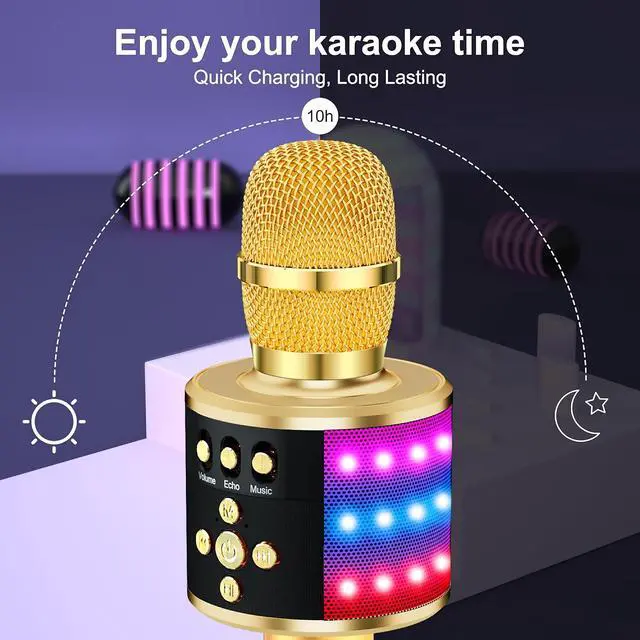 Compact & Portable: The lightweight, portable design allows you to take your karaoke microphone anywhere. Whether you're hosting a party or enjoying a solo session, its easy to carry and use wherever you go.