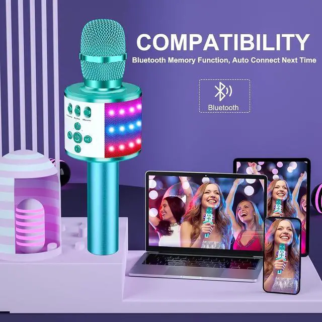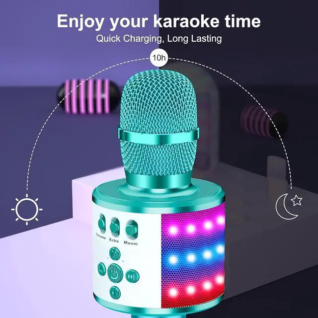 Compact & Portable: The lightweight, portable design allows you to take your karaoke microphone anywhere. Whether you're hosting a party or enjoying a solo session, its easy to carry and use wherever you go.