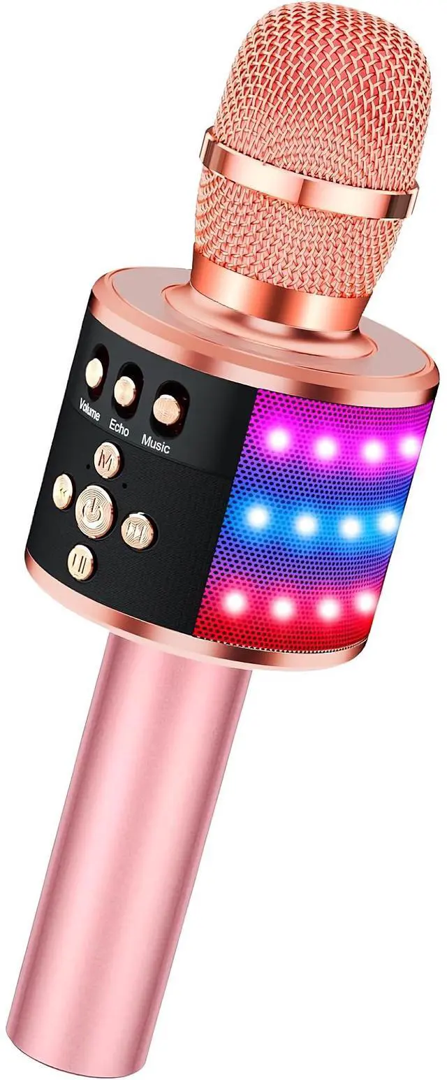 Toytexx Inc Bluetooth Karaoke Microphone, 4-in-1 Wireless Mic with LED Lights for Kids & Adults Rose Gold