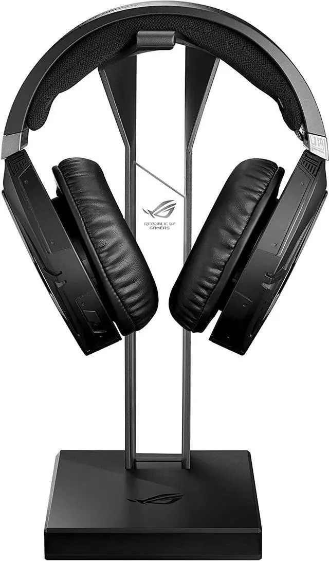Gaming headset stand with optimized hanging hook design, stable and non-slip base and compatible with most headsets. The stand for ROG Throne Core headsets provides stability and style. Its optimized arch design features a stable latch that keeps the headset securely in place, while the large-area base, non-slip bottom and rubber feet prevent it from tipping over. With sharp angles and clean lines, ROG Throne Core will leave a distinctive impression on any game setting.