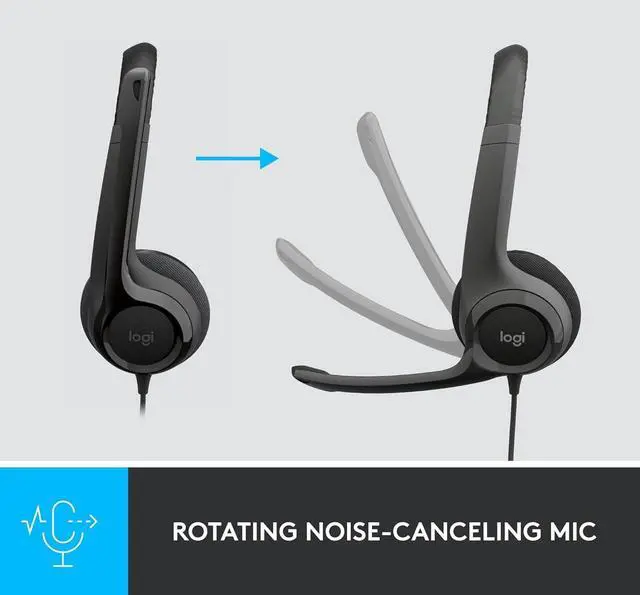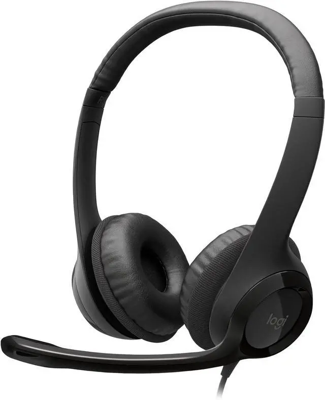 h390 wired stereo black headset with noise-cancelling microphone