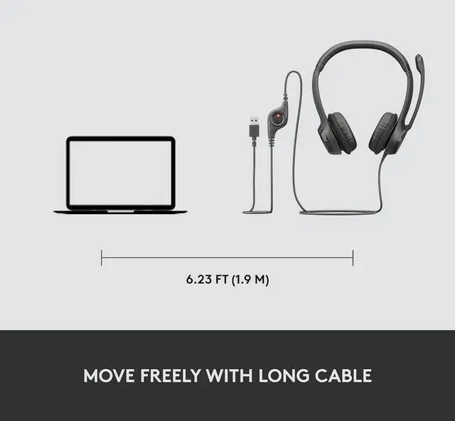 The 6.23 ft ( 1.9 m) cable is just the right length to give you the freedom to stand up and stretch during long conversations.