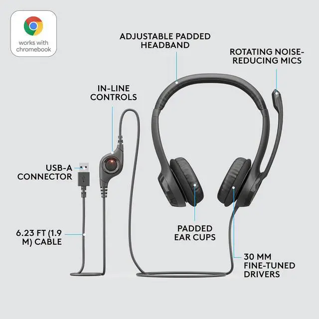This plug-and-play headset can be used without the need to install software. Simply plug the USB-A connector into your computer and youre ready to talk or listen right away.