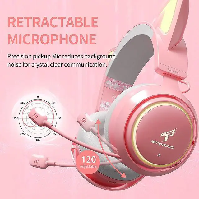• Retractable&120° Roting MicrophoneGS510 2.4G cat headset with an omnidirectional sensitive microphone can transmit high-quality communication, get clearer voice quality and reduced background noise for an improved voice experience.