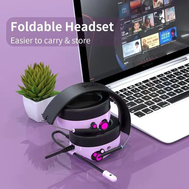 H10 PC gaming headset can can be folded and stored to save desktop space; plug and play, driver-free, widely compatible with PC / MAC / PS4 / PS5 / laptop through USB connection. (Note: Not available for Xbox devices).