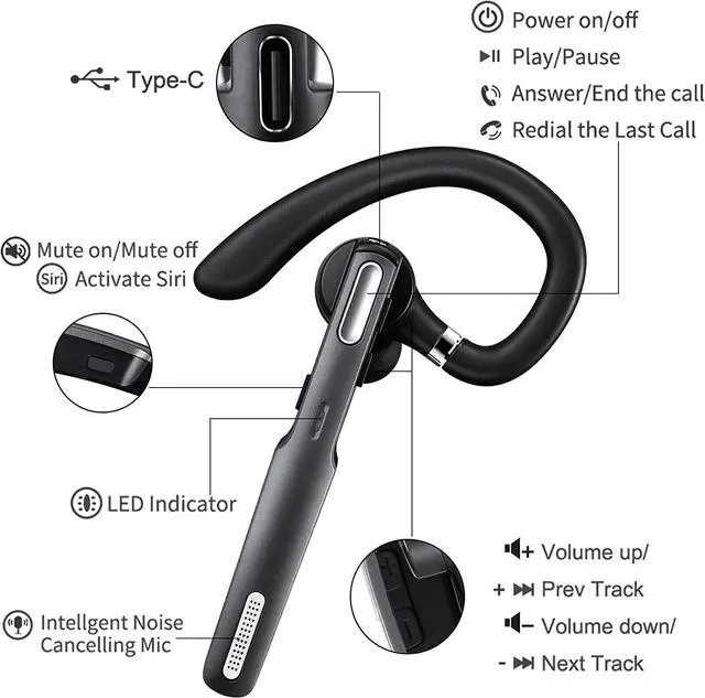 Hands-free for calling - This Bluetooth headset With mic Supports Siri and voice assistants. Easily mute/unmute with the touch of a button. Voice alerts battery level, connection status, mute/unmute status, and even announce the phone number of caller except the caller name. Easy-to-reach buttons let you enjoy real hands-free.