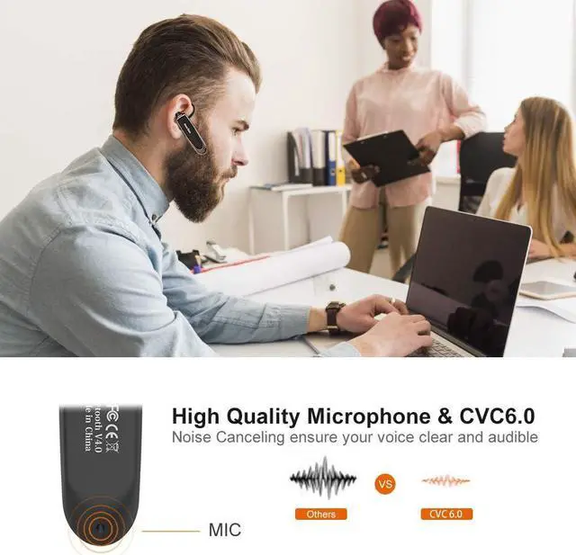 CRYSTAL CLEAR SOUND: Wireless business headset Superior sound quality and noise reduction microphone makes you enjoy clear, crisp hands-free phone calls and music while in the office or at the gym.
