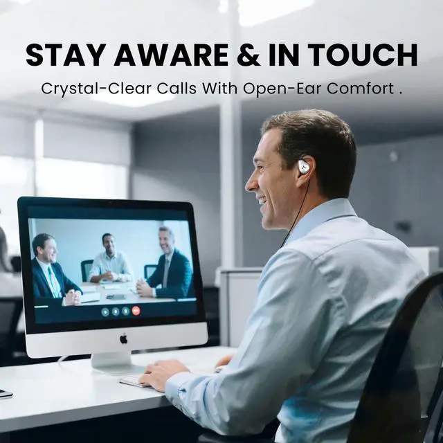 A: Yes! The open-ear design lets you hear your surroundings. Great for office use, walking the dog, or staying aware of people or sounds at home.