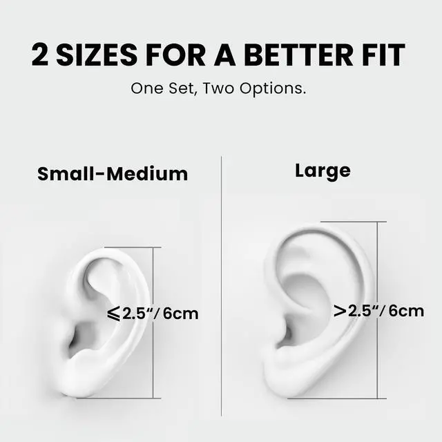 A: We offer Small and Large sizes. Small fits ears under 2.5", Large fits over 2.5". Please check your ear size before ordering for the best fit.
