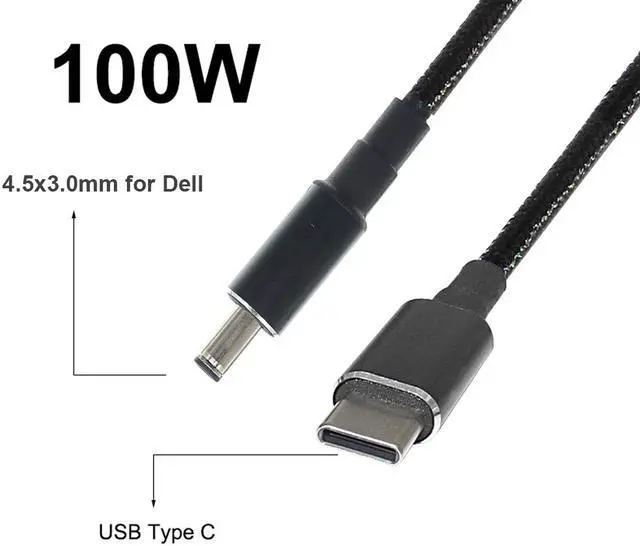 100W USB C Type-C to 4.5*3.0mm Adapter PD Charger Cable for Dell 90W or below laptops
