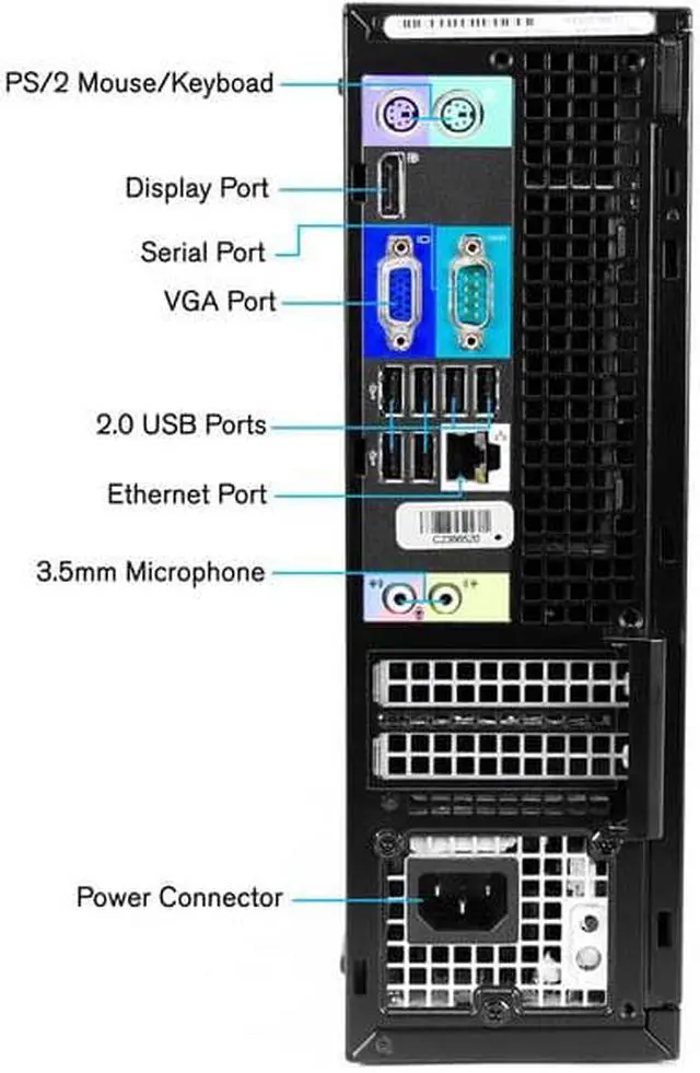 Microphone Jack Back: 6x USB2, PS2, LAN, VGA, Display Port, Serial port, earphone jack, microphone jack. Standard 250W Power Supply 4x RAM slot, 2x PCI-e 16, 1x PCI-e 4, 1x PCI