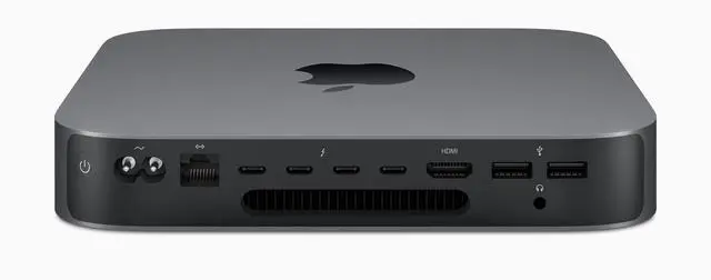 . The Apple Mac mini "Core i7" 3.2 (Late 2018/Space Gray) features a 14 nm "Coffee Lake" 3.2 GHz Intel "Core i7" (8700B) processor with six independent processor "cores" on a single chip, a 12 MB shared level 3 cache, 8 GB of user upgradable 2666 MHz DDR4 PC4-21300 SDRAM, 128 GB, 256 GB, 512 GB, 1TB, 2TB of onboard PCIe-based SSD storage, and an "integrated" Intel UHD Graphics 630 graphics processor that shares system memory.