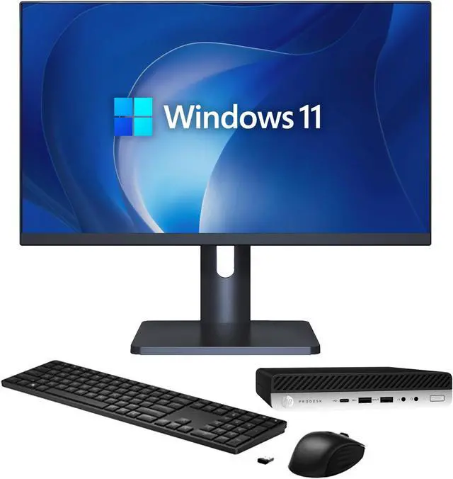 Package Content: Hp ProDesk 600 G4 Desktop Mini PC, New 27 inch Full HD Monitor, New Wireless Keyboard & Mouse, USB Wi-Fi Adapter and Power Cord.