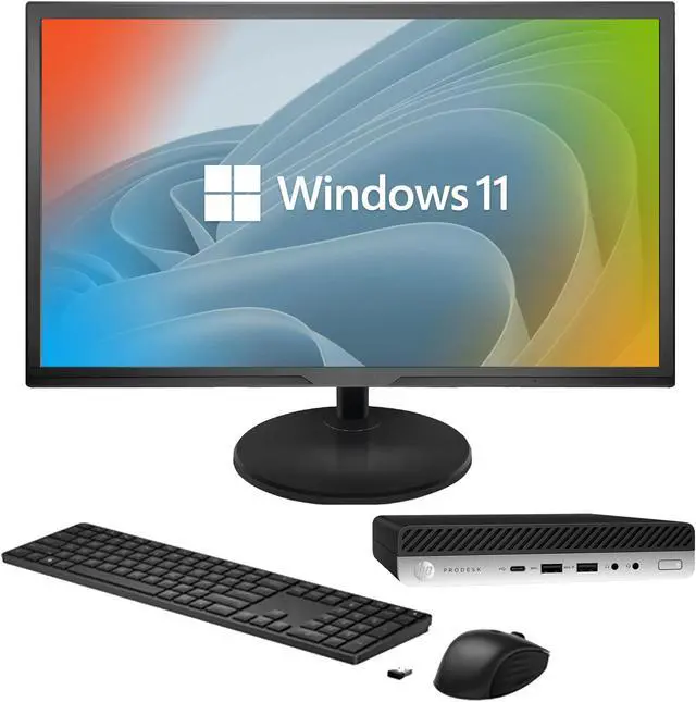 Package Content: Hp ProDesk 600 G4 Desktop Mini PC, New 22 inch Full HD Monitor, New Wireless Keyboard & Mouse, USB Wi-Fi Adapter and Power Cord.