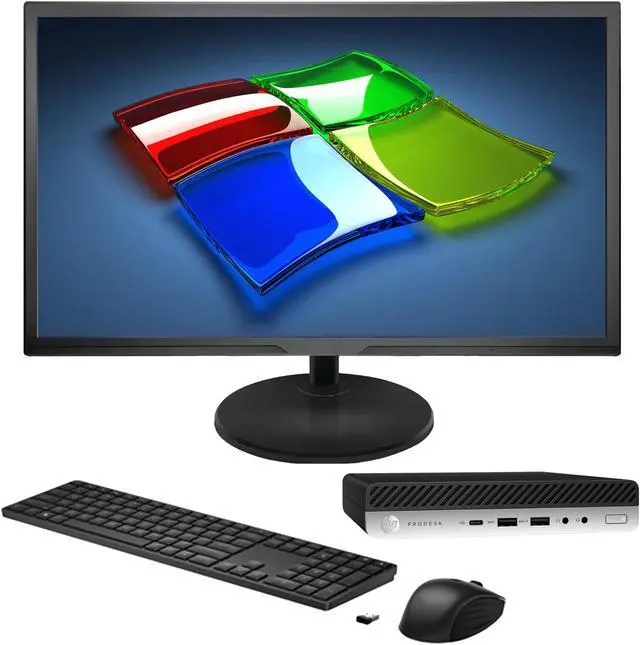 Package Content: Hp ProDesk 600 G4 Desktop Mini PC, New 22 inch Full HD Monitor, New Wireless Keyboard & Mouse, USB Wi-Fi Adapter and Power Cord.
