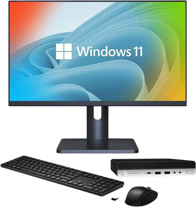 Package Content: Hp ProDesk 600 G4 Desktop Mini PC, New 27 inch Full HD Monitor New Wireless Keyboard & Mouse, USB Wi-Fi Adapter and Power Cord.