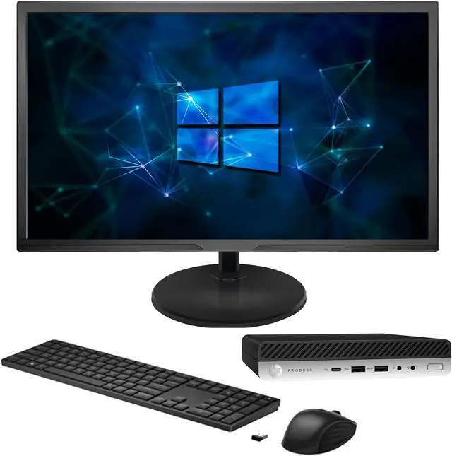 Package Content: Hp ProDesk 600 G4 Desktop Mini PC, New 22 inch Full HD Monitor, New Wireless Keyboard & Mouse, USB Wi-Fi Adapter and Power Cord.