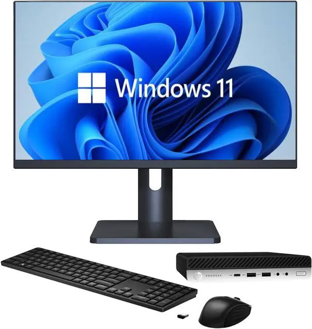 Package Content: Hp ProDesk 600 G4 Desktop Mini PC, New 27 inch Full HD Monitor, New Wireless Keyboard & Mouse, USB Wi-Fi Adapter and Power Cord.