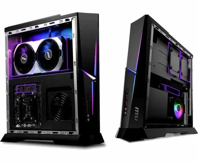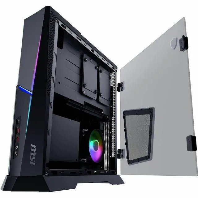 The MPG Trident AS is not just about performance; it also offers a unique aesthetic appeal. With a compact 10-liter design, it saves desk space while providing interchangeable style options with classic black or transparent tempered glass side panels. Customize your rig with Mystic Light and Ambient Link, syncing your RGB setup with in-game color schemes for an immersive experience.