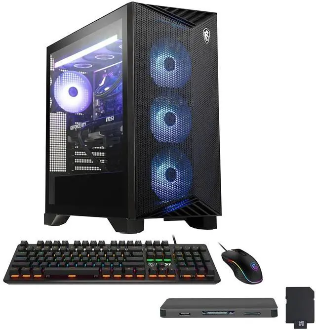 The MSI Aegis ZS2 Gaming Desktop is equipped with an AMD Ryzen 9 9900X processor and NVIDIA GeForce RTX 5080 graphics, delivering exceptional gaming performance and stunning visuals, and comes complete with a keyboard and mouse for a ready-to-play experience.
