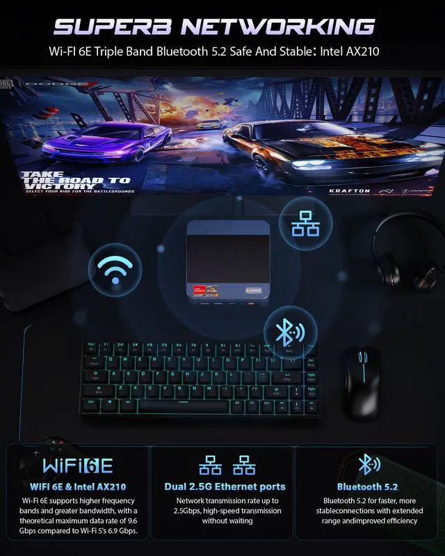 Wi-Fi 6E (802.11 a/b/g/n/ac/ax), Bluetooth 5.2 |
