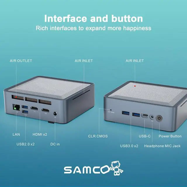 Samco GA01 Mini Desktop PC, AMD Ryzen 7 5825U Wi-Fi 6E Windows 11 Pro