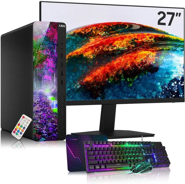 AXOII RGB Desktop PC + 27" Monitor Intel Core i5 up to 4.0GHz, 16GB RAM, 256GB SSD, Wi-Fi, Windows 11 Pro