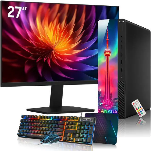 AXOII RGB Desktop PC + 27" Monitor Intel Core i5 up to 4.0GHz, 16GB RAM, 256GB SSD, Wi-Fi, Windows 11 Pro