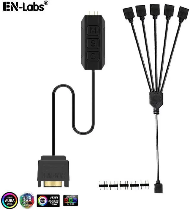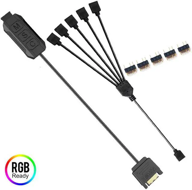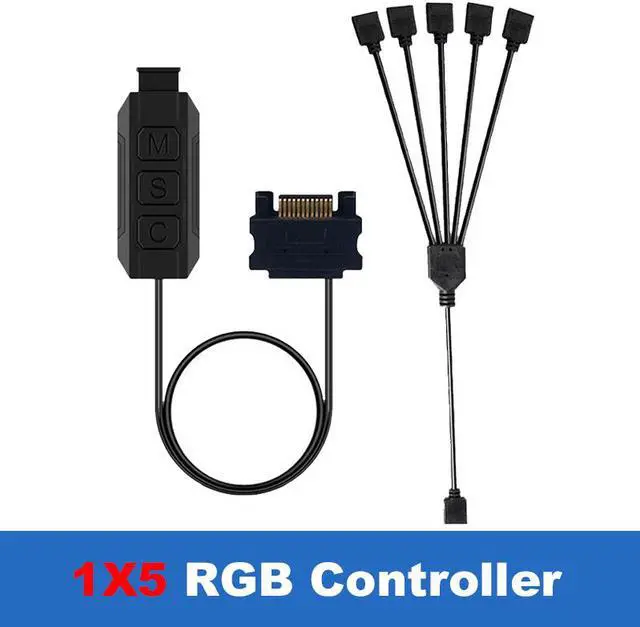 SATA to 5V 3-Pin ARGB AURA 3 Button Controller w/ 4 ARGB Splitter Extension Cable for ARGB Strip Fans and Coolers