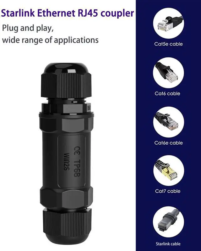 Adapter Kit: IP68 Waterproof RJ45 Coupler for Starlink Cable/Cat7/Cat6/Cat5E/Cat5 Network LAN Cable Extender - Suitable for Repair and Extend Network Cables (Not lightning protected)