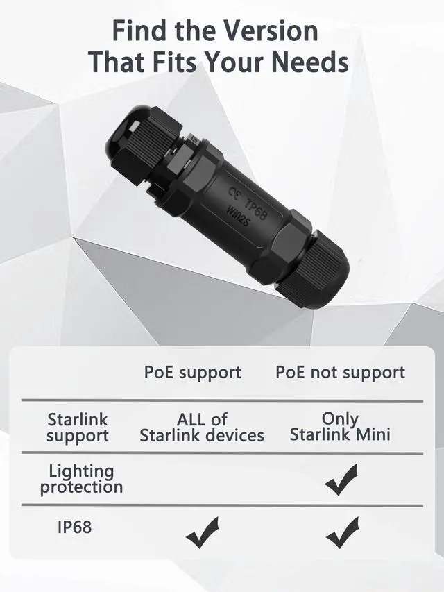 • UNIVERSAL STARLINK COMPATIBILITY Works with: Starlink Gen 3 rectangular dish, Starlink Mini & router. Third-party PoE injectors (Ubiquiti/TP-Link/Security monitoring). All Ethernet-enabled devices.
